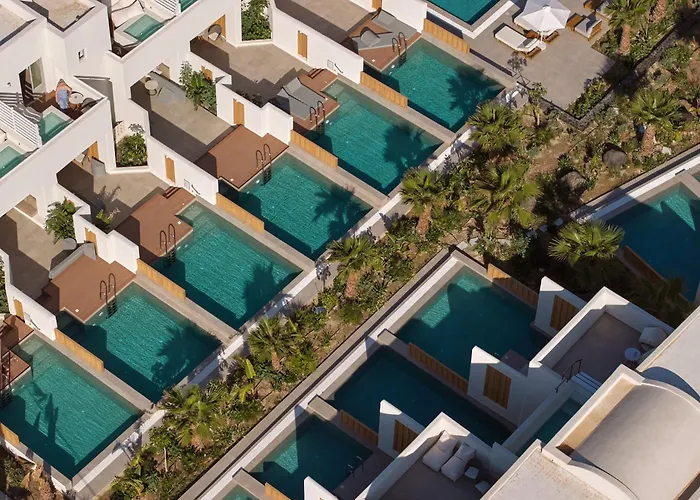 La résidence est placée dans le quartier "Perissa Beach" à Períssa, assez proche du Parc aquatique de Santorin. Cet hotel 5 étoiles est fixé à environ 10 minutes en voiture de Théra.